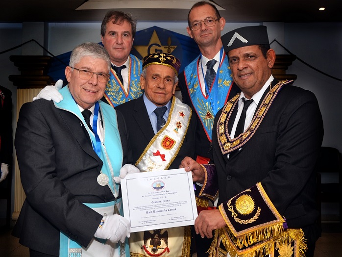 Tenida de Gran Oriente celebrada el sábado 6 de abril de 2019 con la finalidad de firmar un tratado de reconocimiento mutuo entre la Gran Logia del Norte de Colombia y La Gran Logia de Italia.